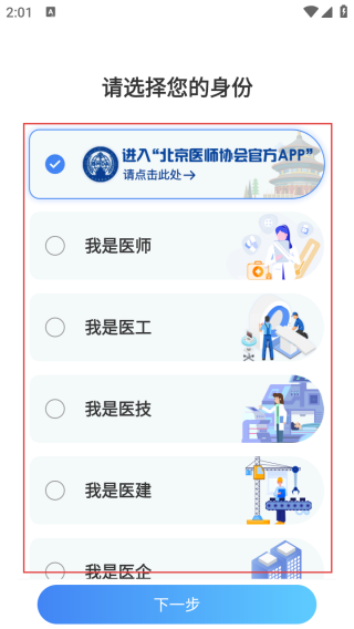 1、打开应用选择自己的身份。