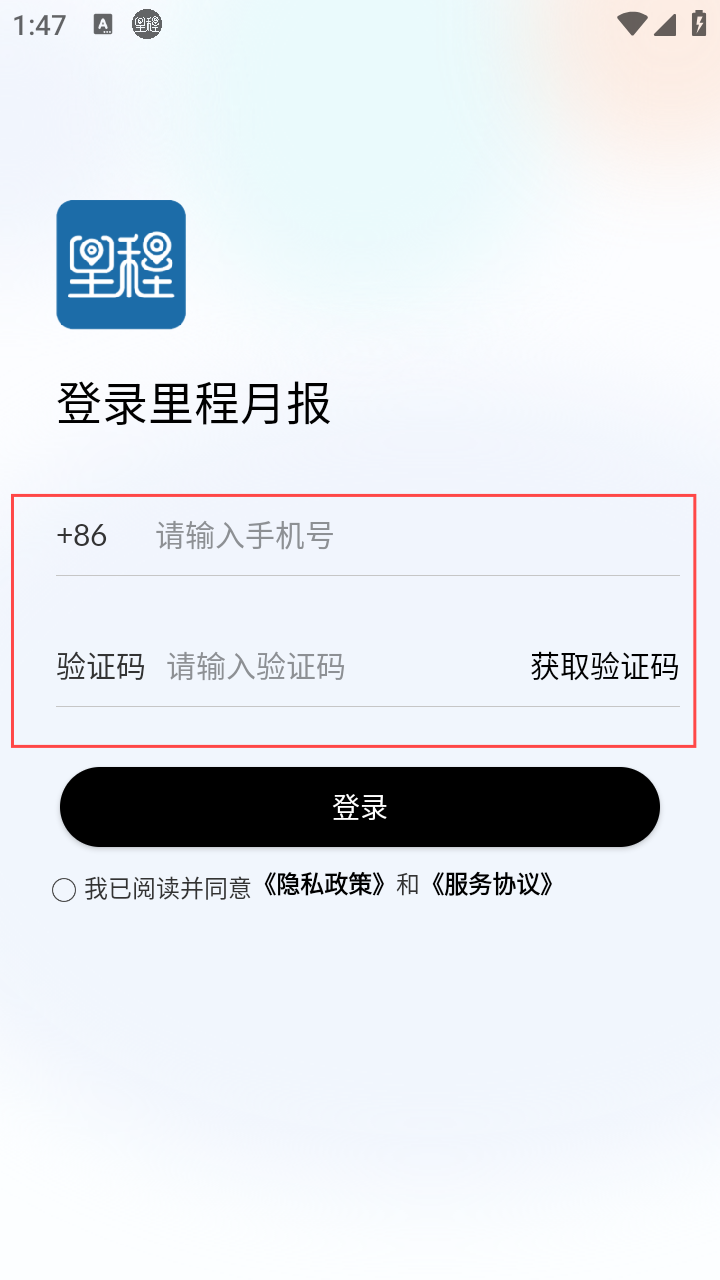 1、打开里程月报,填手机号与验证码,点【登录】进入。