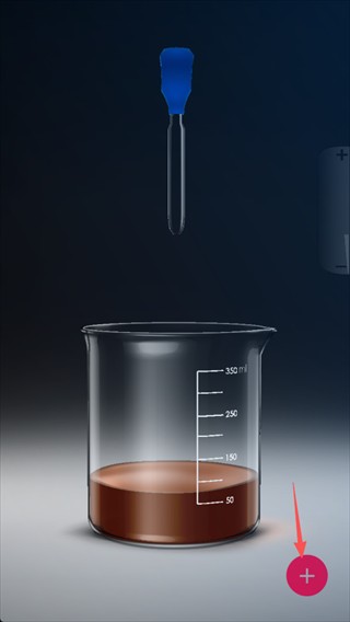 3.调节试剂用量:在屏幕右上角,滑动“+”或“-”按钮,设定倒入烧杯的试剂容量。