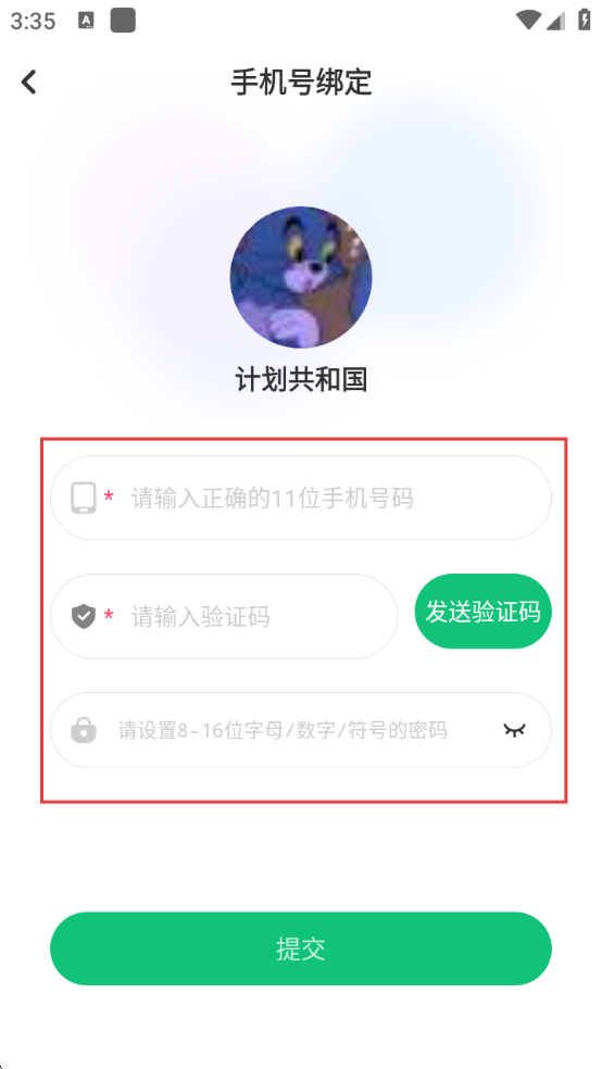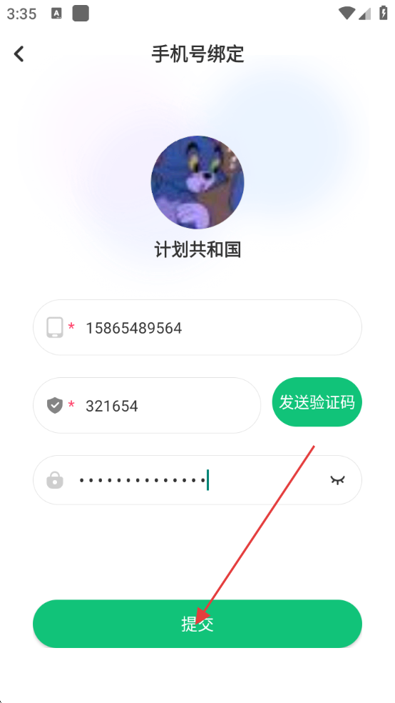 4、输入完手机号、验证码和密码后,点击【提交】按钮,完成手机号绑定操作。