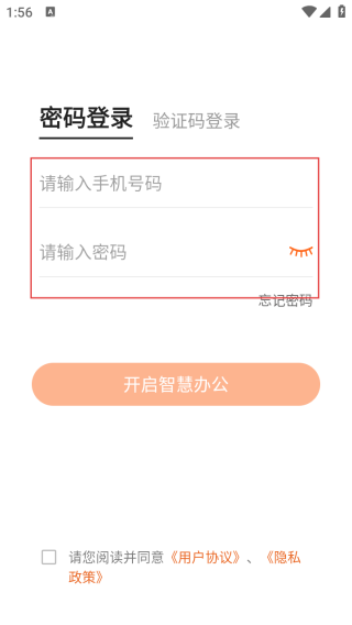 2、进入登录界面输入手机号和密码。
