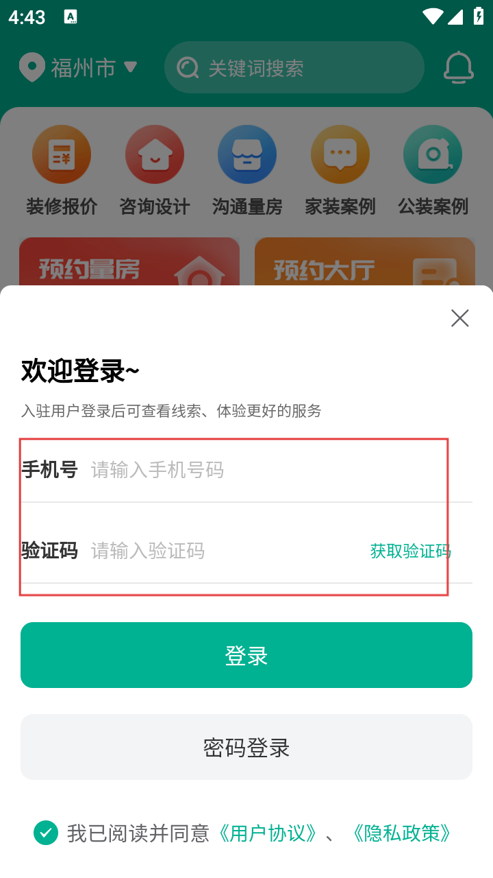 2、在【欢迎登录】弹窗,填手机号、验证码,勾选协议后点【登录】,完成登录。