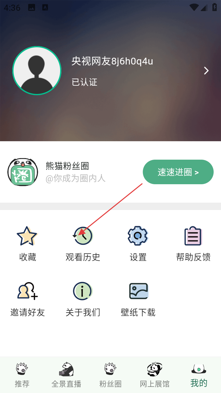 熊猫频道怎么查看观看记录