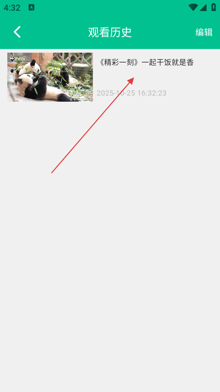 3、在观看历史页面,可看到之前观看过的熊猫相关内容记录,点击对应的内容条目。