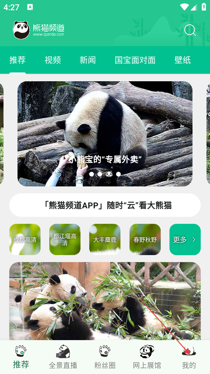 1、在熊猫频道APP推荐页面,点击底部【我的】选项,进入个人中心页面。