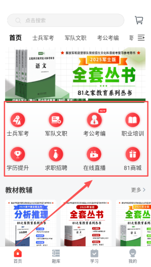 81之家致力于为考军校的学员提供全面的学习资源,包含各种教材以及教辅资料,让用户能够随时购得所需书籍并进行学习。该软件还提供了多样的助学助考服务,帮助考生顺利报名进入军校。同时,为退役军人提供求职平台,便于他们快速找到合适的工作。