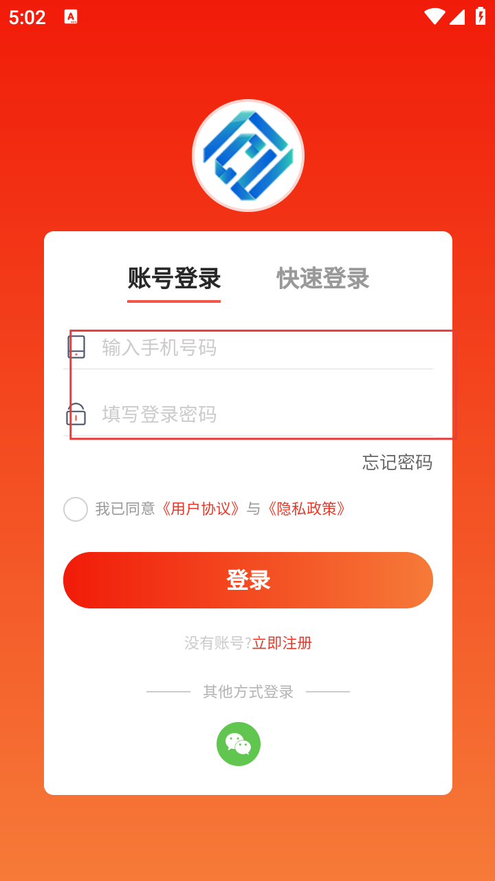 4、在账号登录页面,依次输入手机号码和登录密码,确认输入的信息无误后勾选协议,然后点击【登录】按钮,完成登录操作。