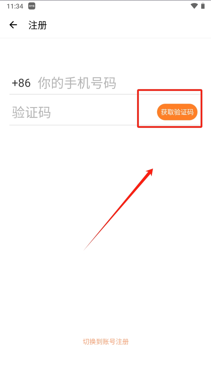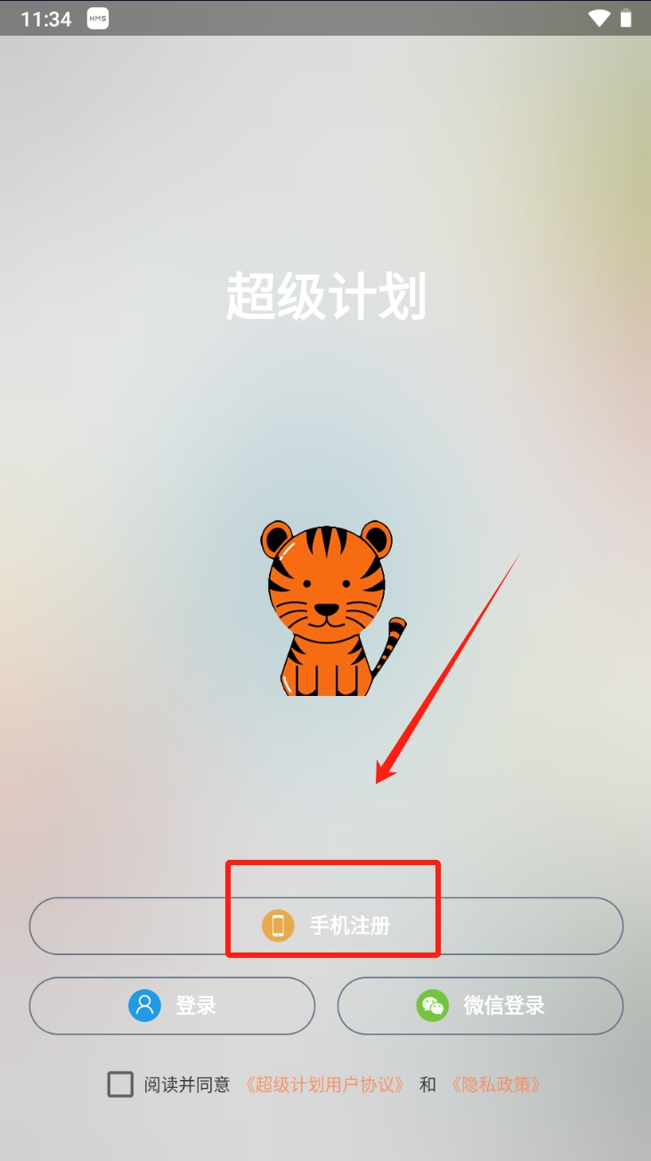 1、点击“手机注册”按钮,进入注册页面,开始注册超级计划应用账号。