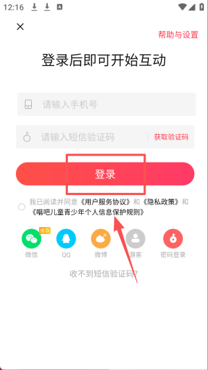 4、输入手机号并点击“登录”按钮,开始使用唱吧应用。