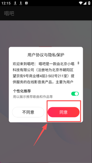 1、点击“同意”按钮,接受用户协议与隐私保护条款。
