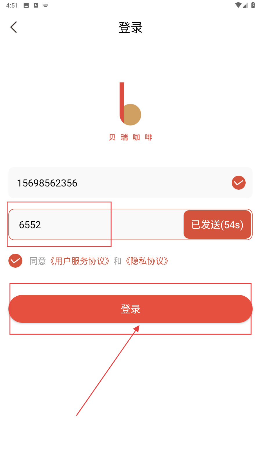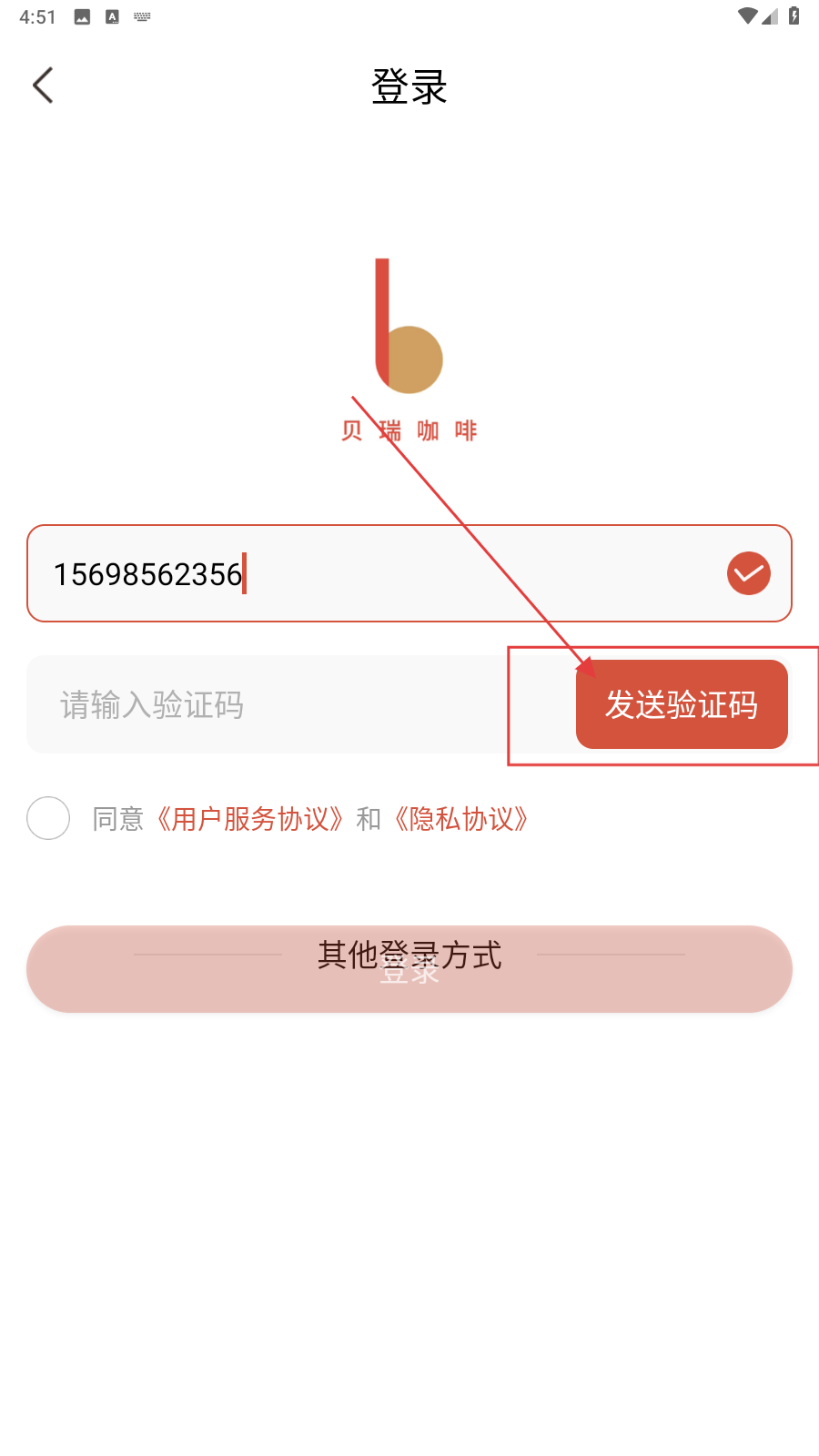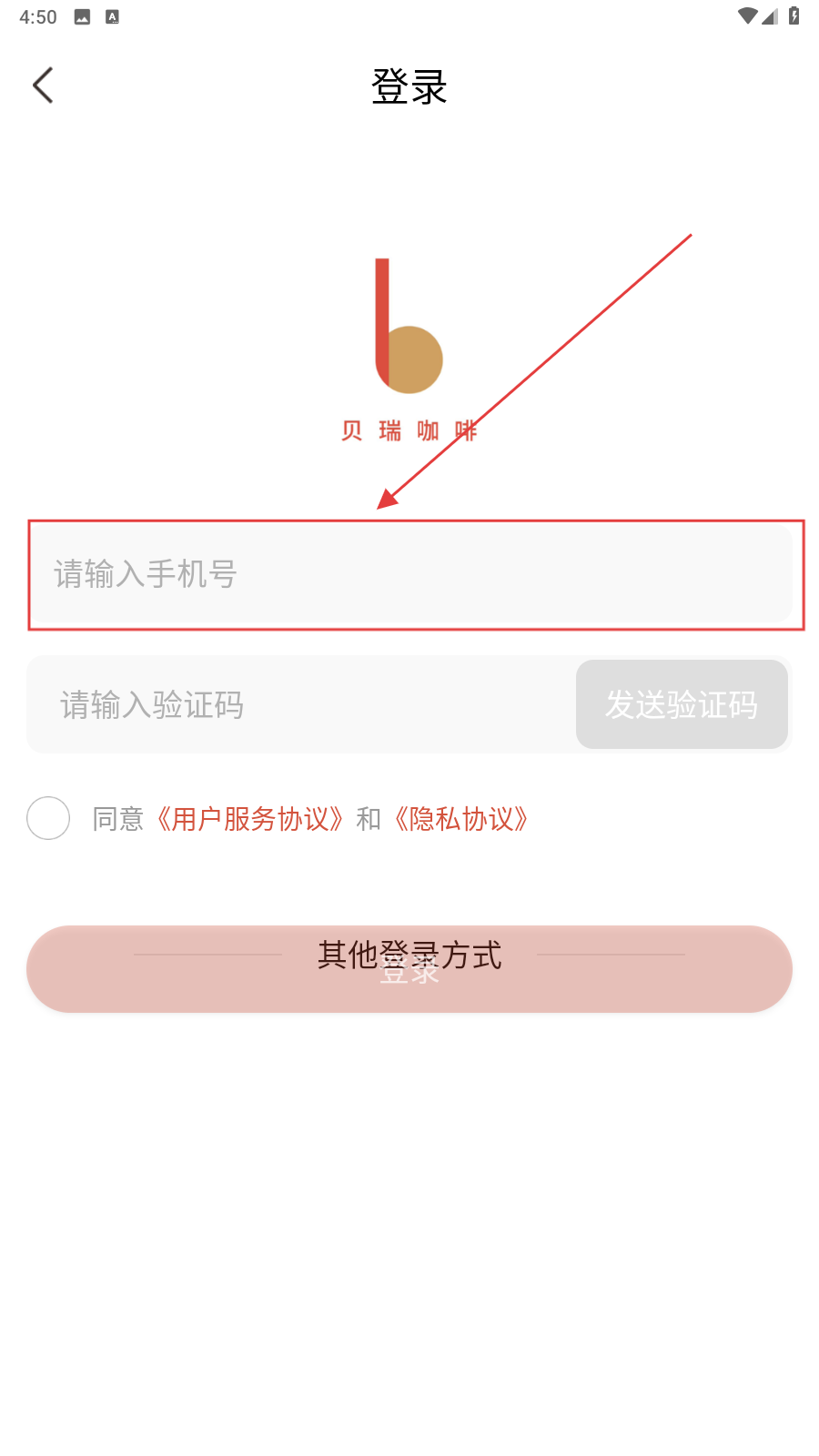 1、打开应用,填写手机号。