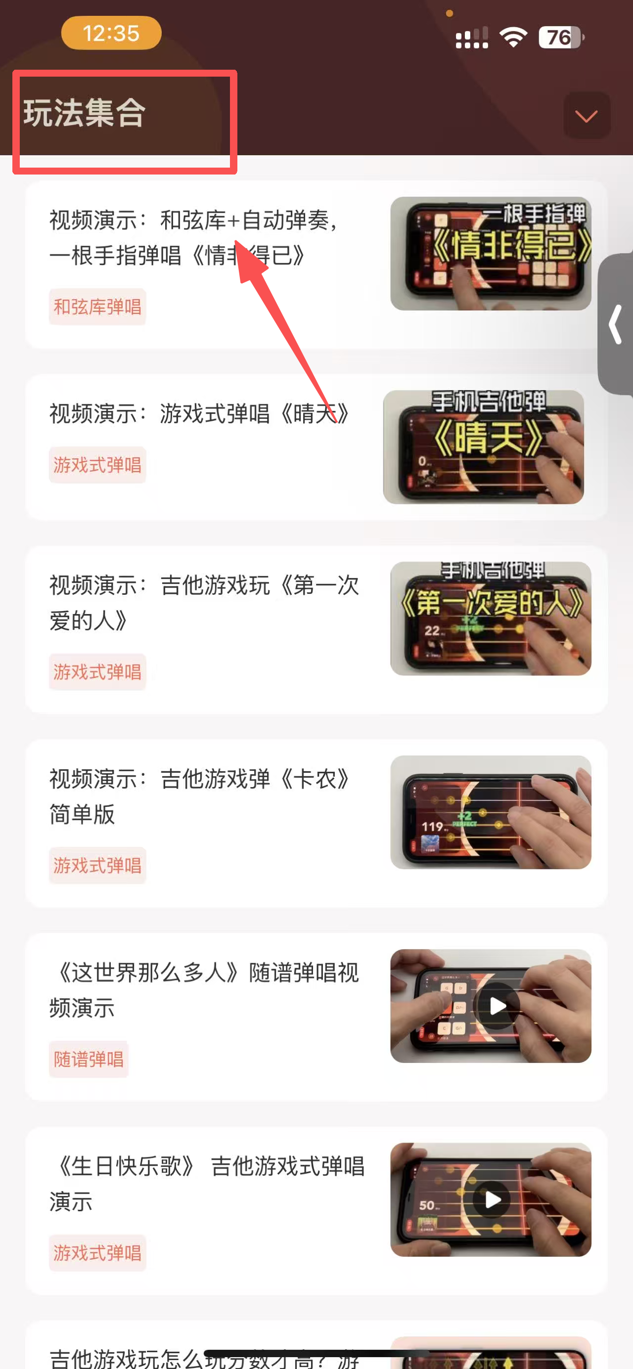 4、探索玩法,点击“玩法集合”图标,学习不同的吉他弹奏玩法。