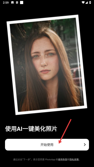 1、打开Photo,在初始界面点击【开始使用】,进入APP主功能界面。