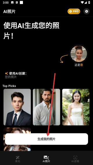 3、切换至【AI照片】板块,点击【生成我的照片】,使用AI生成个性化照片。