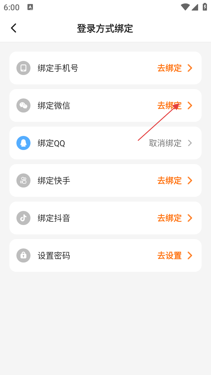 4、在登录方式绑定界面,点击【绑定微信】后的“去绑定”选项,可进行微信绑定操作,绑定后可通过微信快速登录233乐园。