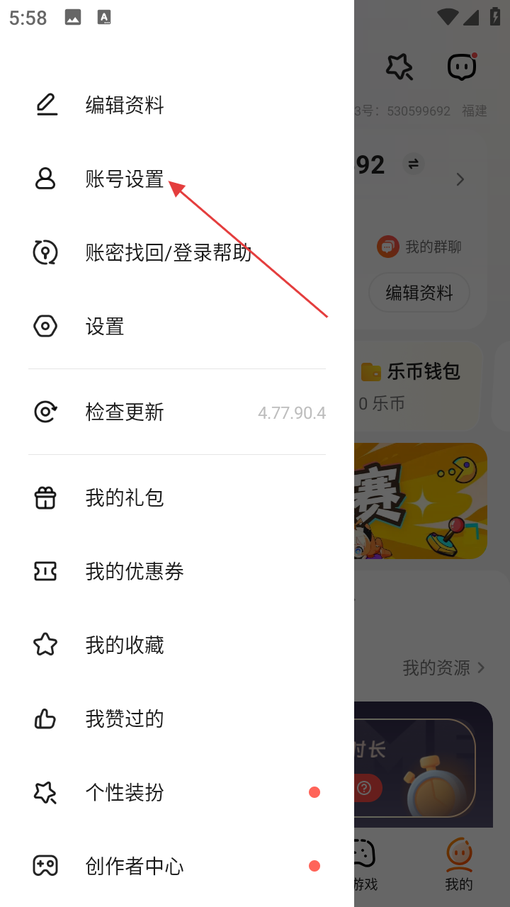 2、在功能列表中,点击【账号设置】选项,进入账号与绑定设置页面。
