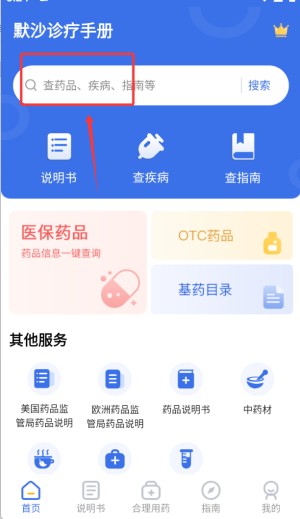 2.在搜索栏输入药品名或成分关键词,就能快速得到详细药物信息,系统会呈现药品说明书、用法用量和注意事项等专业内容。