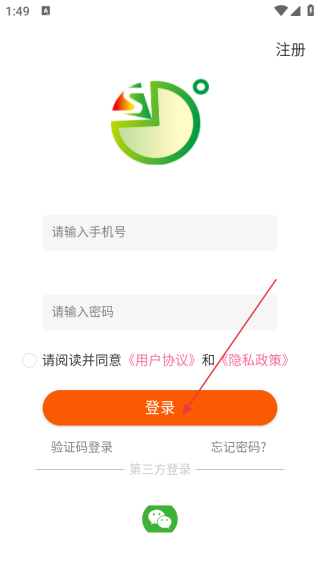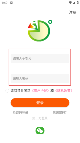 2、进入登录界面输入手机号和密码。