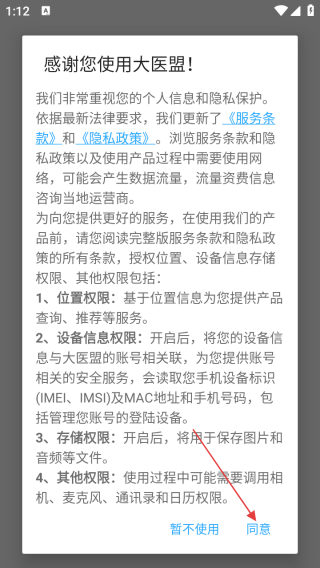 1、打开应用查看协议点击同意。