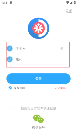 2、进入登录界面输入手机号和密码。