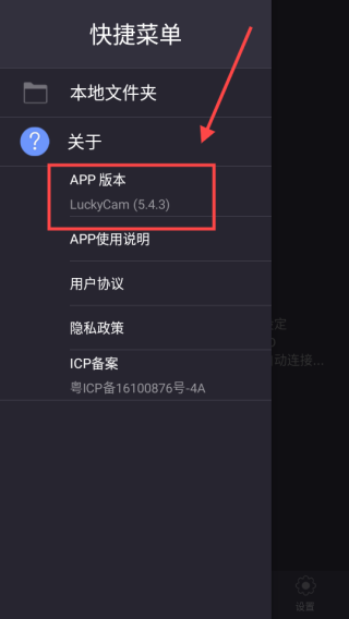 3、在快捷菜单中,可查看【APP版本】信息,了解当前APP版本号。