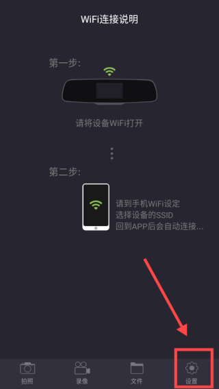 2、进入WiFi连接说明界面,点击底部【设置】按钮,进入相关设置页面。