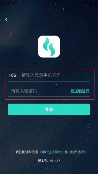2、进入登录界面输入手机号和验证码。
