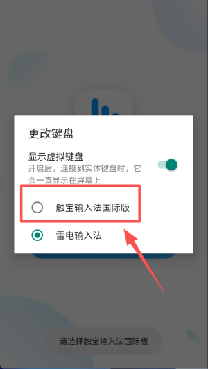 3、更改键盘为触宝输入法国际版,在键盘设置中选中该选项。