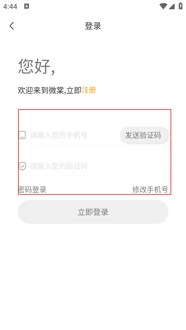 4、登录页填【手机号】【验证码】,点【立即登录】,完成操作。