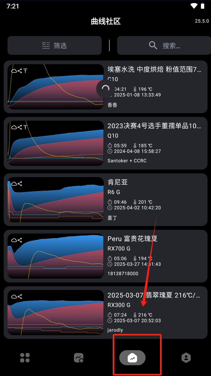 3、浏览社区:点击“曲线社区”查看其他用户的烘焙曲线。
