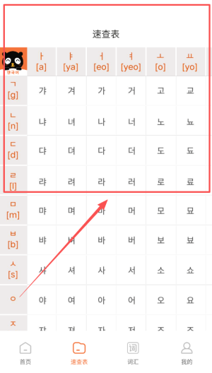 3、接下来,应用内的速查表让用户在学习过程中随时查找相关内容,以便理解和记忆,增强韩语学习的乐趣。