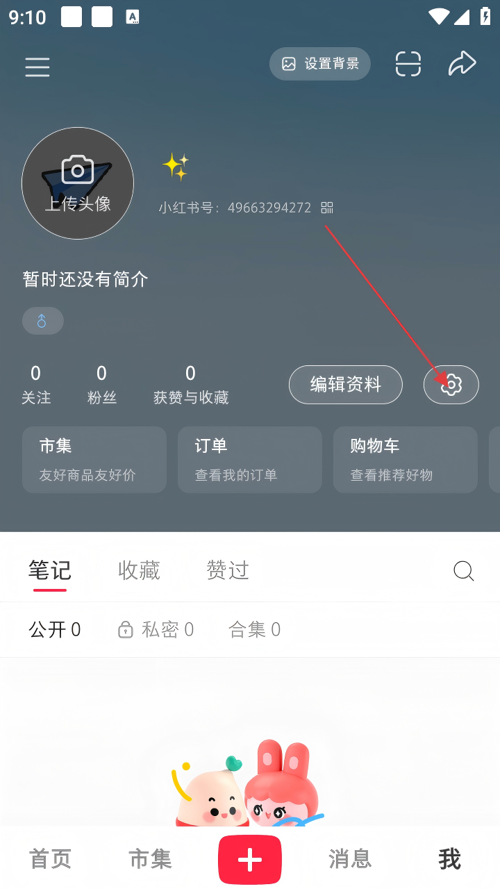 2、在个人页面,点击齿轮状【设置】图标,进入设置界面。