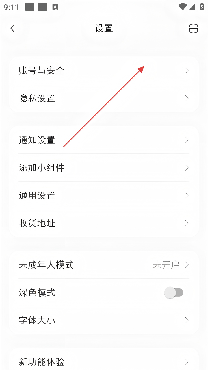3、在设置页面,找到【账号与安全】选项并点击。