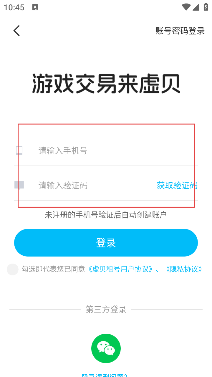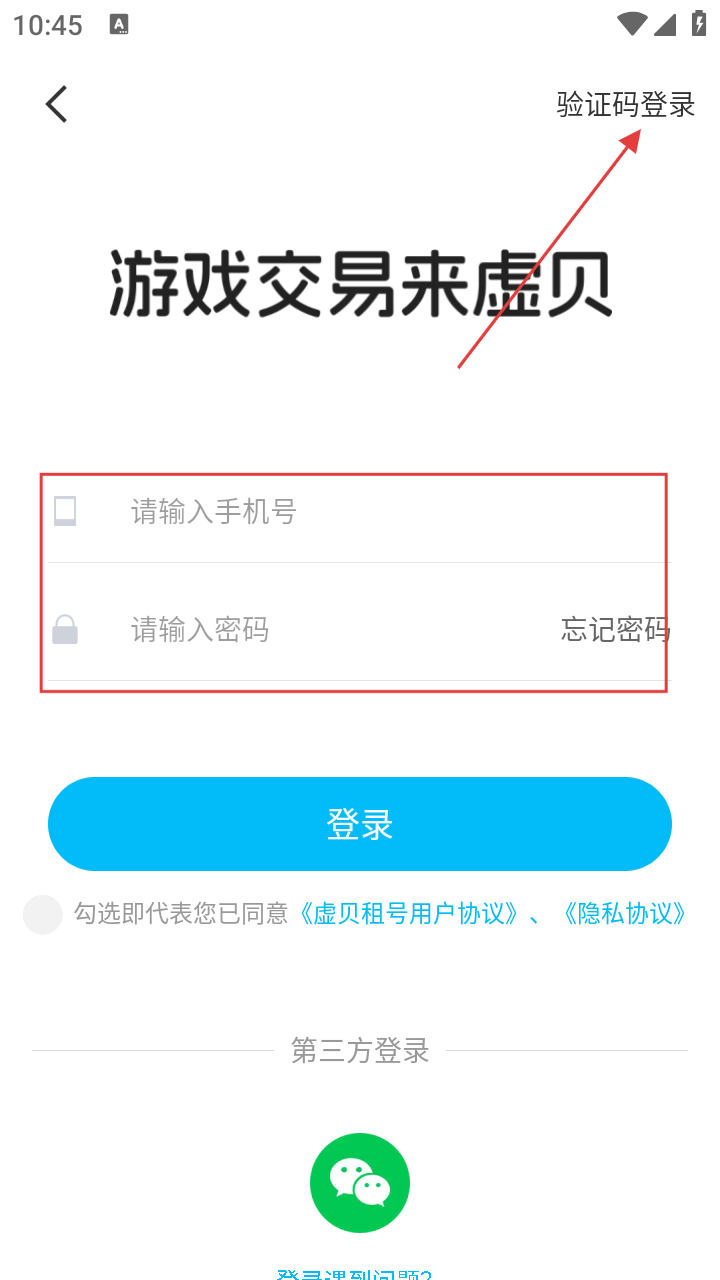 4、输入验证码后,勾选同意用户协议和隐私协议,点击【登录】按钮,即可完成验证码登录,进入虚贝APP使用相关服务。