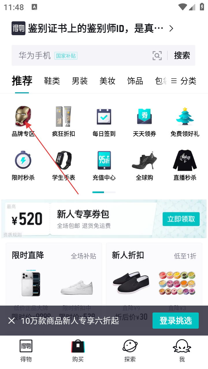 3、在购买页面,点击【品牌专区】图标,进入品牌专区页面。