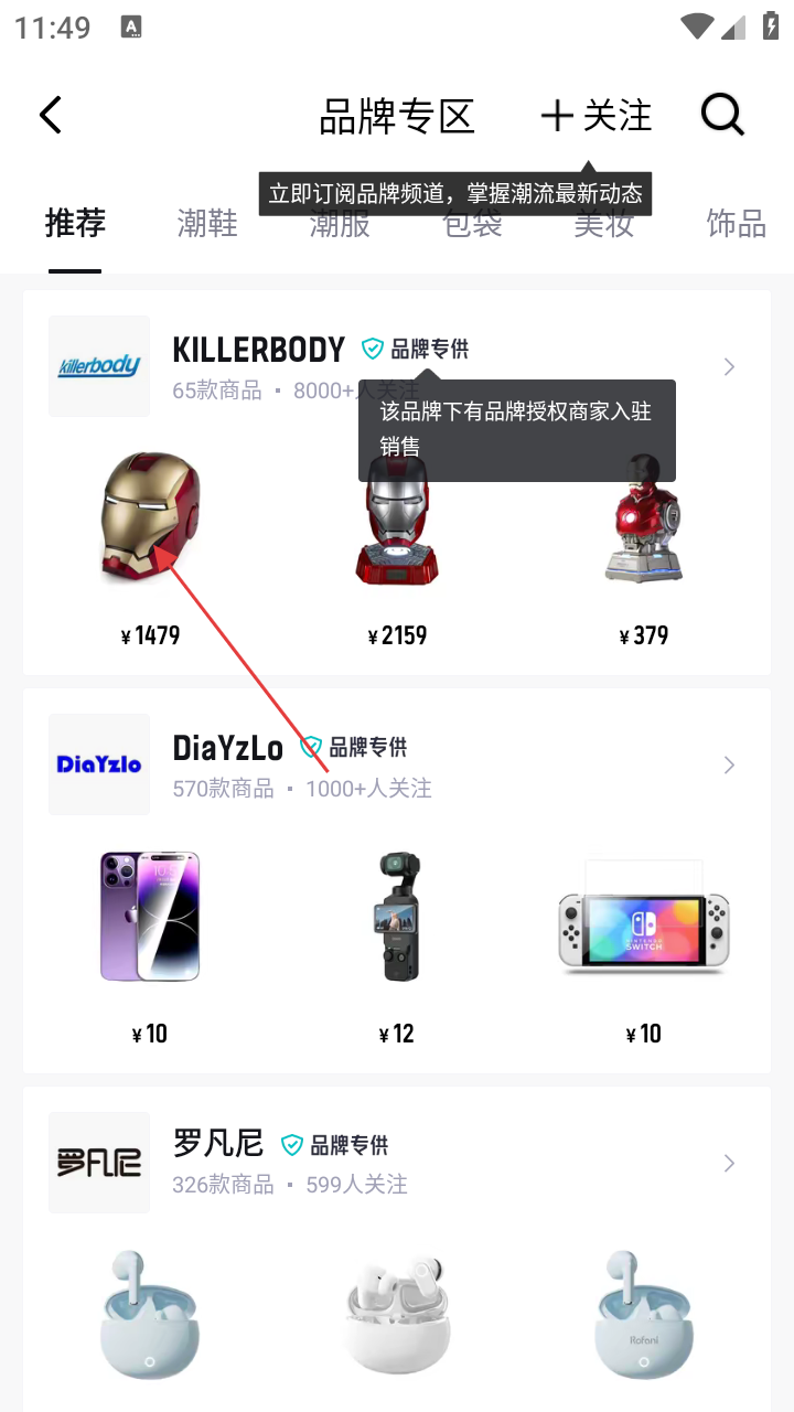 4、在品牌专区页面,可看到【KILLERBODY】等品牌及商品,浏览挑选心仪商品。