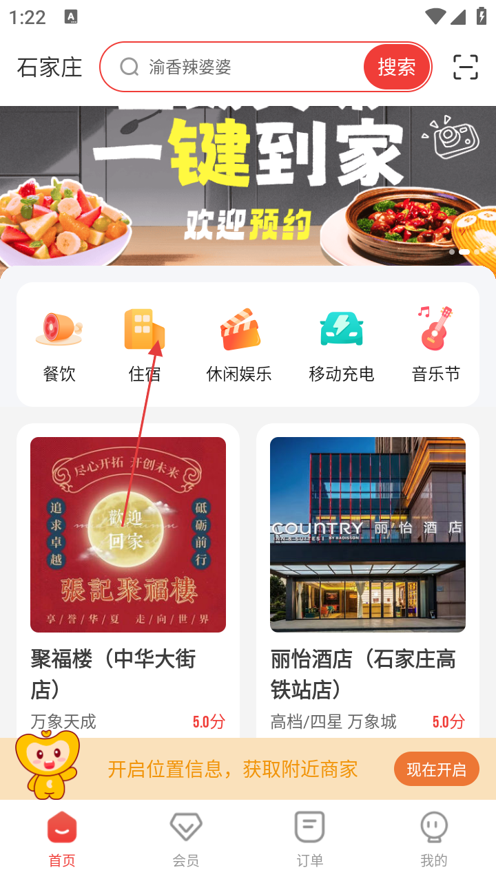 1、打开相关生活服务类应用首页,点击【住宿】分类,进入住宿商家列表页面。