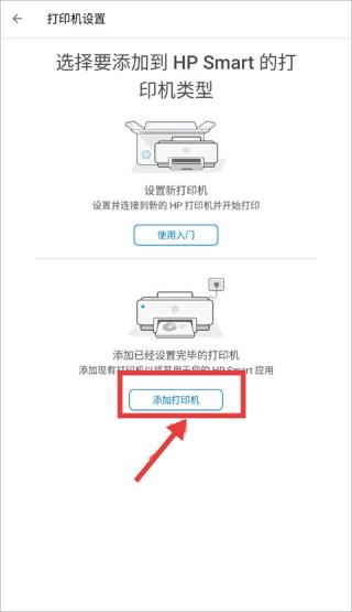 1、打开HPSmart应用,在首页点击【添加第一台打印机】按钮,进入打印机设置界面。