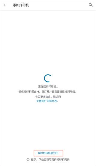 3、确保打印机处于受支持状态且已打开并正确连接到网络,等待应用搜索到打印机,按后续提示完成添加。