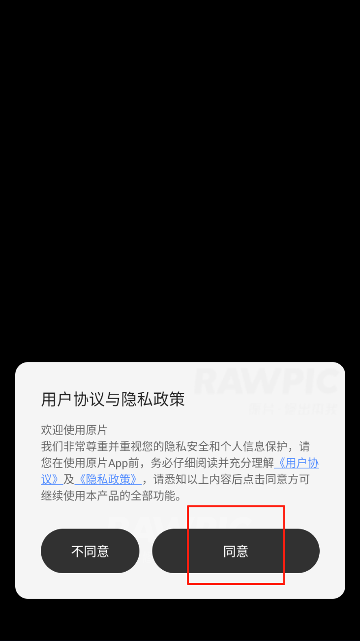 1、首先,阅读并同意用户协议与隐私政策。点击“同意”按钮以继续使用应用。