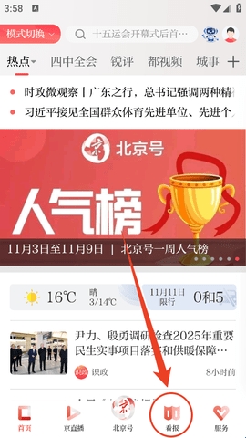 1、进入软件之后,点击下方的“看报”。