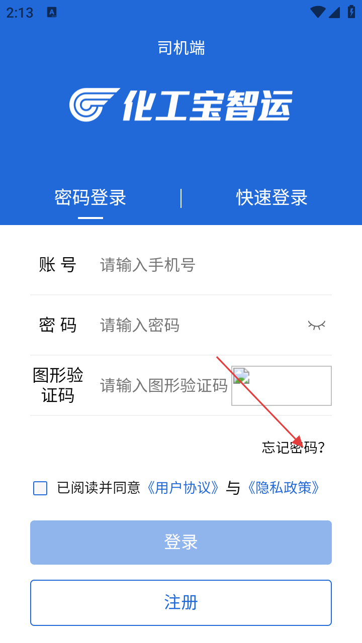 化工宝智运驾驶端忘记密码怎么登录