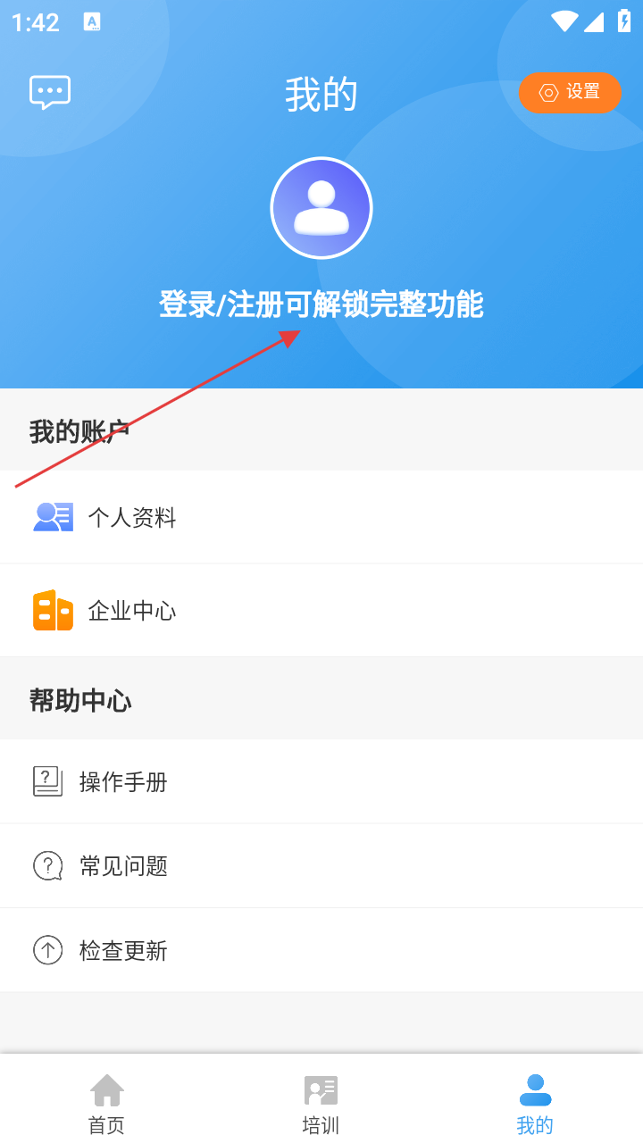 2、在个人中心,点击【登录/注册可解锁完整功能】,进入登录页。