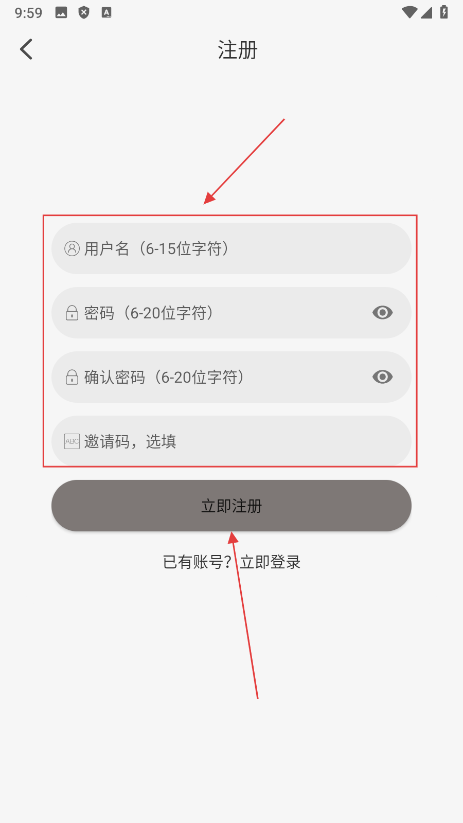 4、在注册页面【填写信息】后点击【立即注册】,即可完成账号注册操作。