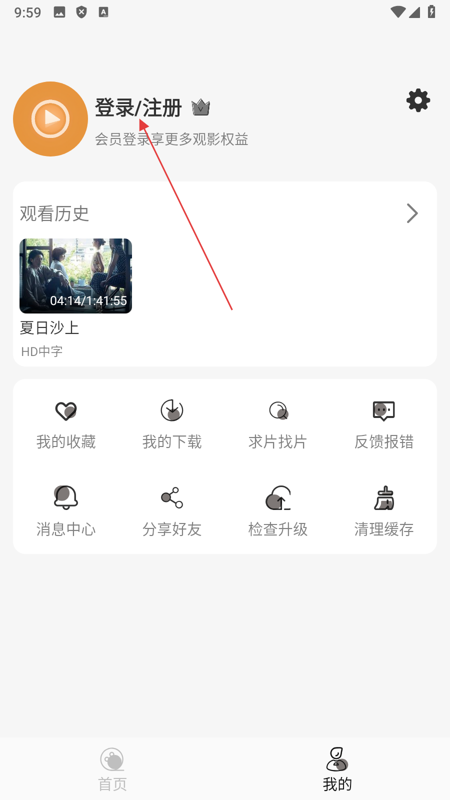2、在个人中心页面,点击【登录/注册】,进入登录页面。