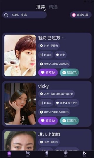 2、精准匹配系统,基于多维度分析提供契合推荐,让你遇见对的人。