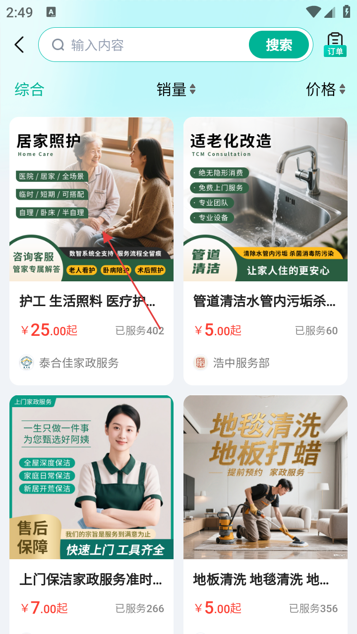 2、家政列表页点【居家照护】,了解服务详情。