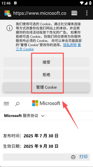 3、在相关界面中,阅读并选择接受服务条款和隐私策略等内容。