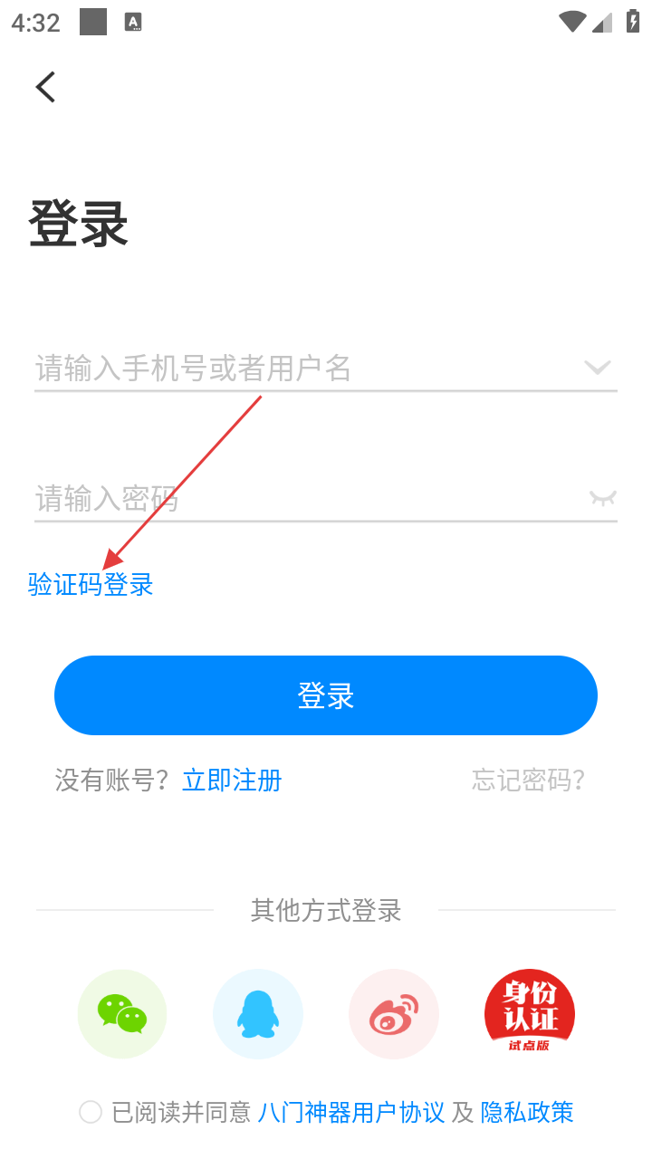 3、在登录界面,点击【验证码登录】,切换至验证码登录方式,方便快捷登录账号。
