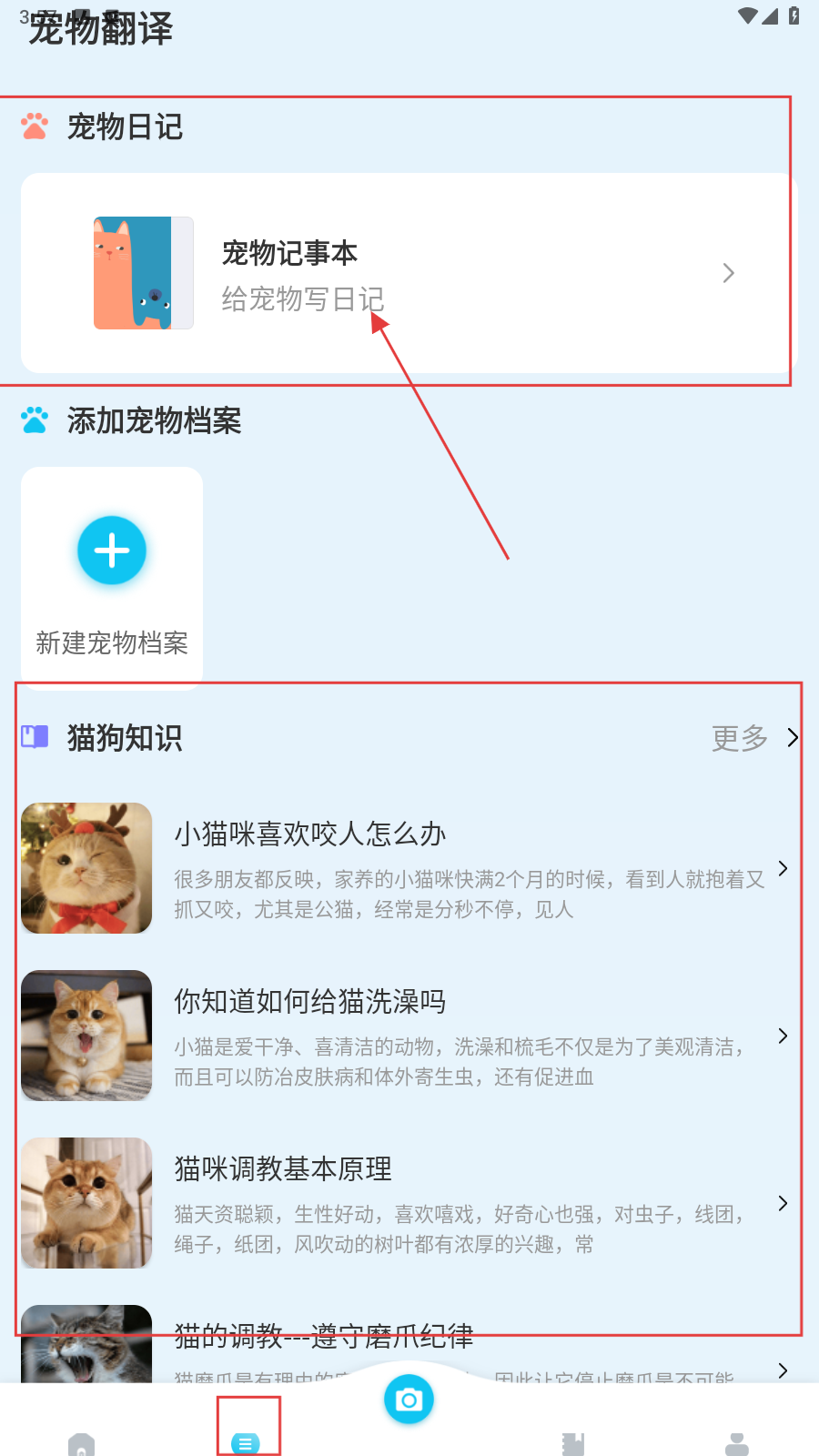 3、点击右下角的【+】图标即可给宠物写日记。